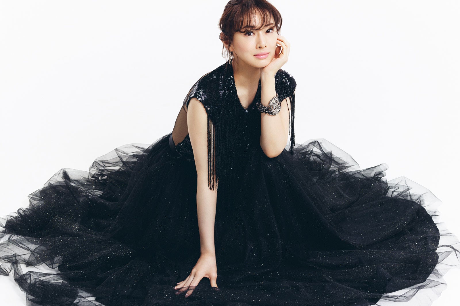 また昨冬に撮影された、北川史上、最も短いショートボブのヘアスタイルが新鮮な撮り下ろしカットは、クールでエレガントな美貌が炸裂。さらに、今年になってから撮り下ろしされたカットでは、凛とした佇まいや眩しいほどの気品溢れる美しさが目を引く。