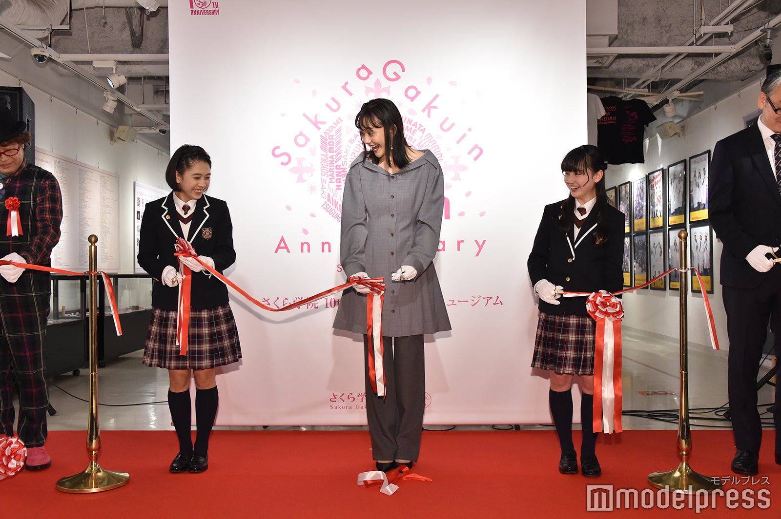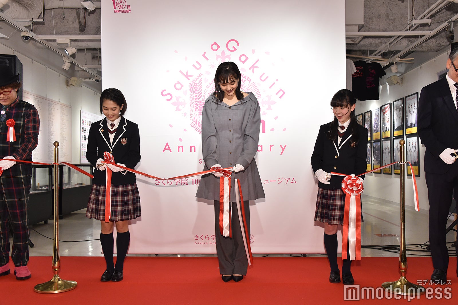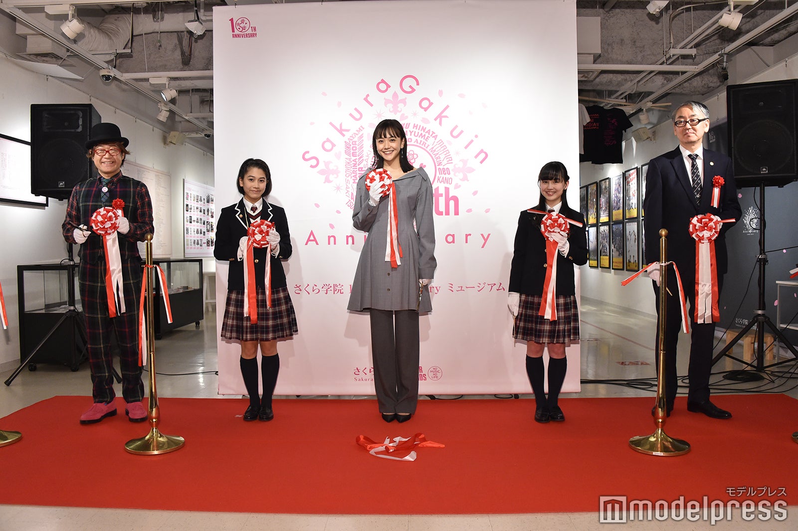 「さくら学院 10th ANNIVERSARY MUSEUM produced by TOWER RECORDS」オープニング・セレモニーが27日、東京・タワーレコード渋谷で行われ、さくら学院の野中ここな、白鳥沙南、2011年度卒業生でモデルで女優の松井愛莉、校長の倉本美津留氏が出席した。