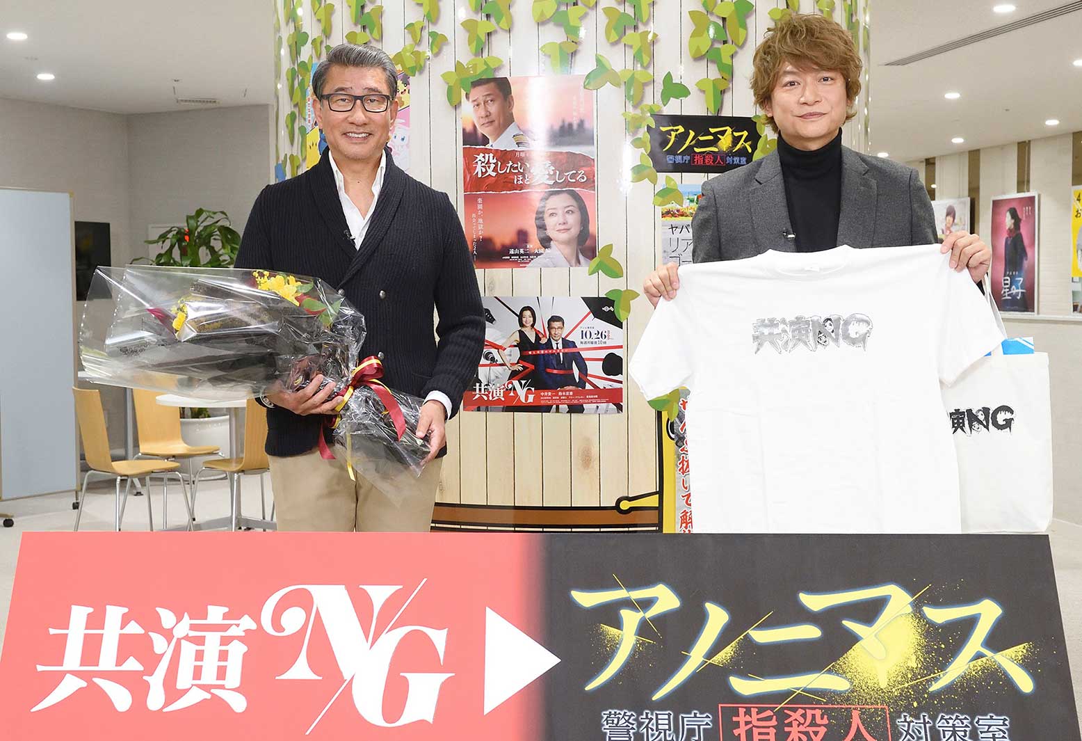 テレビ東京では6日、「共演NG」(毎週月曜よる10時~※7日最終回10分拡大)の最終回放送直前&「アノニマス~警視庁“指殺人”対策室」(2021年1月放送開始)の撮影スタート直前を記念し、各番組の主演である中井貴一と香取慎吾によるバトンタッチ・セレモニーを実施した。