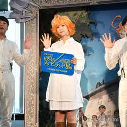 同展では、「週刊少年ジャンプ」で好評を博した人気漫画「約束のネバーランド」の名シーンの数々を展示するほか、秘蔵資料や描きおろされたエピソードの公開も。六本木ヒルズ展望台 東京シティビューにて2020年12月11日から2021年1月11日まで。藤田は、作品に登場する主人公の一人・エマのコスプレ姿で登壇。「用意してあったウィッグがあったのですが、自分の家から持ってきました。再現率が高いのかなと思って。去年のハロウィンのときにやったエマのコスプレの(ウィッグ)」とこだわりを覗かせた。