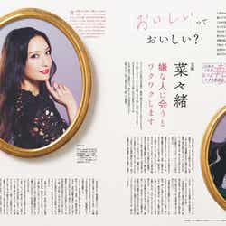 今号の巻頭インタビューでは、「劇場版美少女戦士セーラームーンEternal」公開を記念し、菜々緒は、戦士たちの前に立ちはだかる敵方のラスボス・ネヘレニアに、渡辺はセーラームーン風コスプレでそれぞれ登場した。