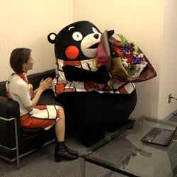 映画「るろうに剣心」の撮影で度々熊本を訪れて以来、くまモンとの交流を深めてきた佐藤。自身の誕生日イベントにくまモンがサプライズで駆けつけたこともあり、今回佐藤からの“サプライズ返し”となった。「くまモンが赤いものが好きだと聞いたので赤いお花をプレゼントさせていただきました。僕の誕生日にもくまモンがお祝いのメッセージをくれたんですよね、ありがとね~」と改めて感謝。また、「何歳になったの?」と尋ねると、くまモンはしばらく考えたあとはてなマークを浮かべ、「わからないの?10周年だけどね(笑)」と佐藤も思わず笑顔に。
