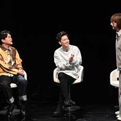 囲み取材では、2人の交流が始まったキッカケも話題に。佐藤は「僕が千鳥の2人のファンだったのですよ。番組で『やりたいこと、ありますか?』と言われたときに、『千鳥とロケに行きたい』と言って、番組内でロケに一緒に行かせていただいたときに連絡先を聞いて、そこから食事に行ったり飲みに行ったりするようになりました」と回顧。そのときの様子を、ノブは「僕もびっくりしました。ロケが終わって帰ろうとしたら、健くんが『ちょっとよろしいですか?』と言って、紙に書いた電話番号をくれたんですよ、まさかの。『佐藤健に今、口説かれてんのか?』とか思いながら(笑)。そこからご飯に行くようになって、謎解きまで発展していった感じですね」と語った。