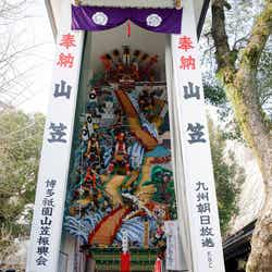 それぞれが選んだ艶やかな振袖に身を包んだメンバーたちは、フェイスシールドを着用し、少し緊張気味に神殿入り。新成人として健やかに過ごせるようご祈祷を受けました。ご祈祷後は、神殿と飾り山笠を前に記念撮影を行った。