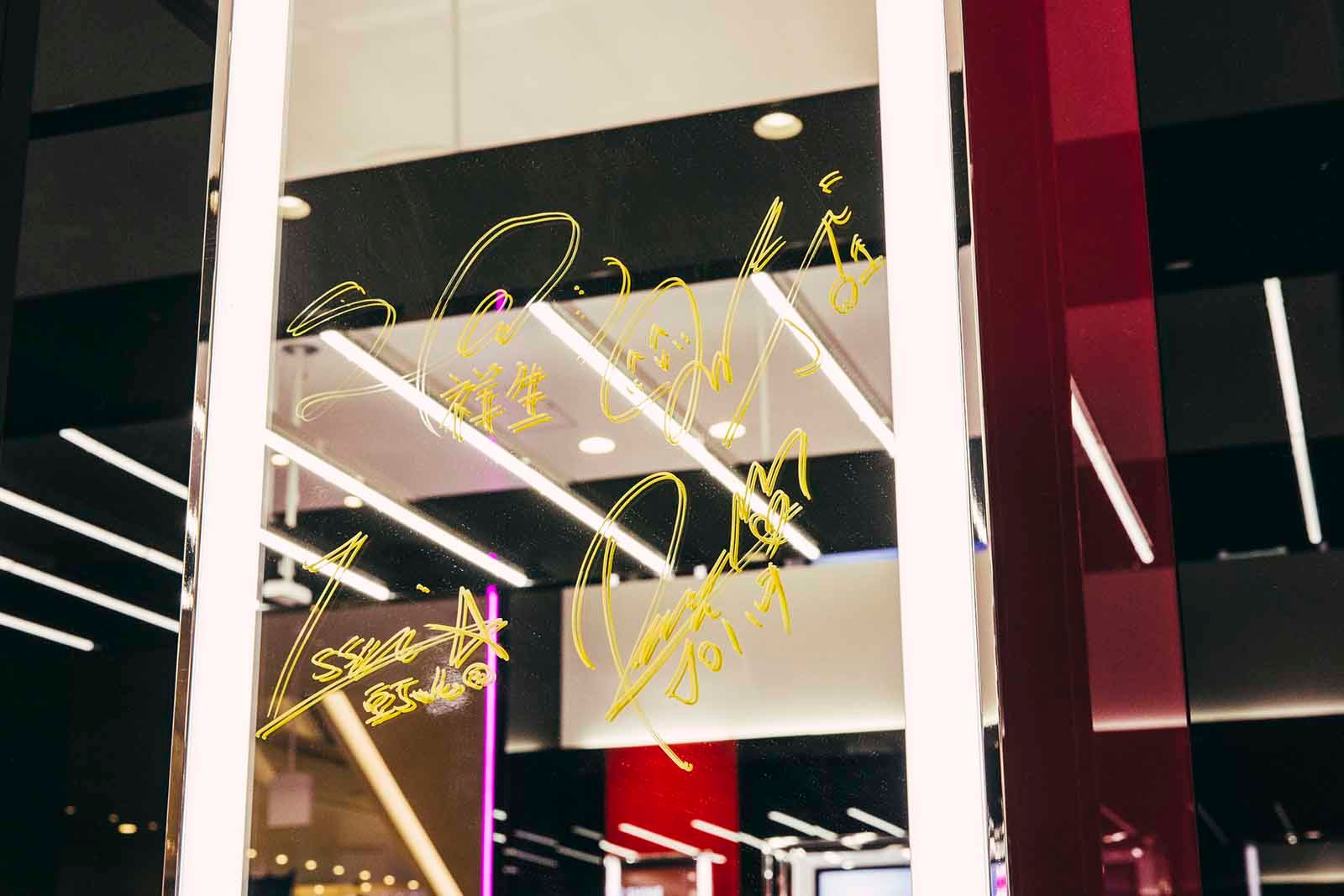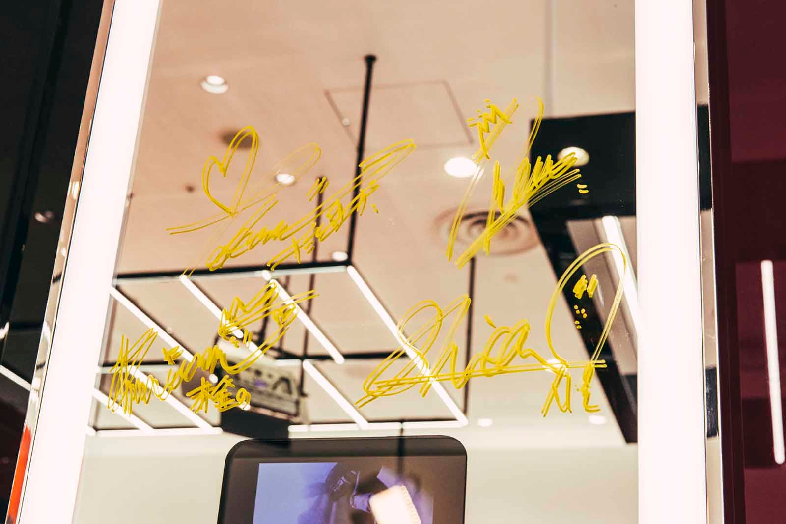 さらに白岩瑠姫は「今、僕たちはイヴ・サンローラン渋谷PARCO店に来ています」、大平祥生は「今回ですね、僕たちルージュ ヴォリュプテ シャインを付けさせて頂いています。このリップ、本当につけ心地がよくて、美容液65%入っていて、プルプルにもなるし、しっかり色もつく、っていう本当にすごいリップです」、河野純喜は「なんと、渋谷PARCO店限定で、自分の名前が彫れて、このお店限定のギターモチーフも彫れちゃいます」とそれぞれアピール。