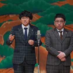 お笑い芸人のミルクボーイ・ミキ・中川家が、1月31日に行われた若手狂言師・野村太一郎らが出演する「狂宴御芸~狂言お笑い共宴~」公演&取材会に出席。観世能楽堂の舞台で漫才を披露した。