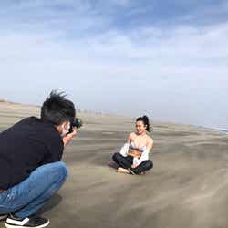 今回が初のグラビア撮影でした。いままでは人に写真を撮られる時、常に笑顔が基本だったのですが、グラビアでは笑顔だけではない自分をたくさん撮っていただき、新しい自分の一面を発見できました。今回の見所は大きくジャンプして「飛躍」を体現しているところ(笑)。何度もジャンプして一番体力を使った撮影シーンでもありました。撮影に合わせてくびれができるよう筋トレしたので、たっぷりみてもらえたら嬉しいです。池本しおりコメント