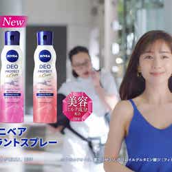 夏にピッタリなキュートなしぐさと表情で、夏の肌を思い切り楽しむ田中の様子がつまっている同CM。背中やデコルテが大胆に露出した衣装の田中が青空の下でかっこよくポージングしたり麦わら帽子を投げたりする“あざと美しい“演技で表現。さらに、スプレーを全身にシューっとするシーンでは、田中の綺麗なうなじやデコルテ、背中の美しさも披露されている。