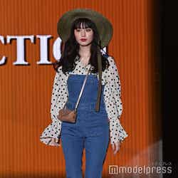 鶴嶋乃愛、赤リップ×ガーリーデニムコーデがお似合い<TGC2021 S/S>