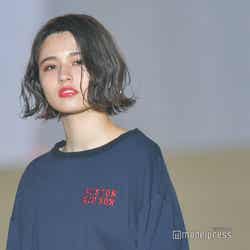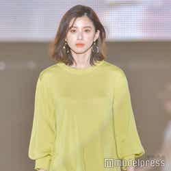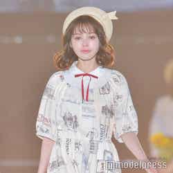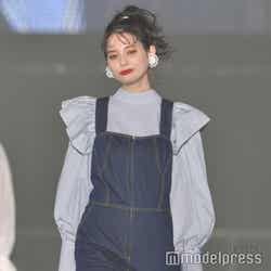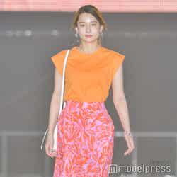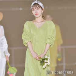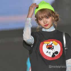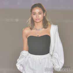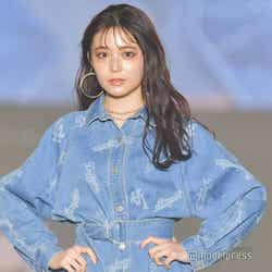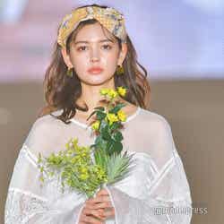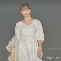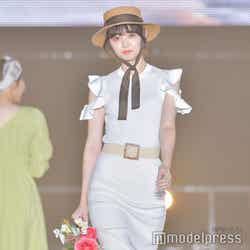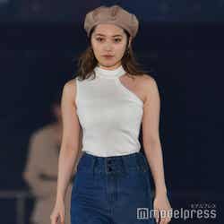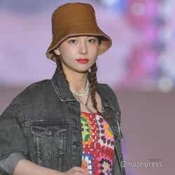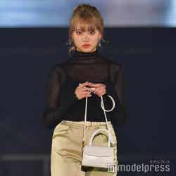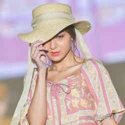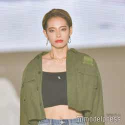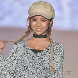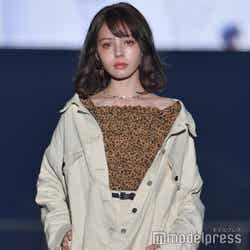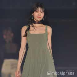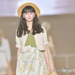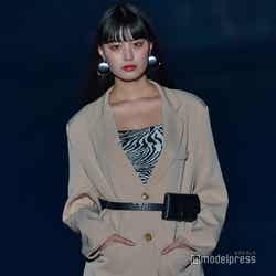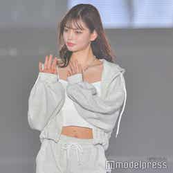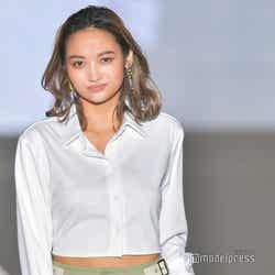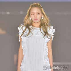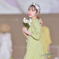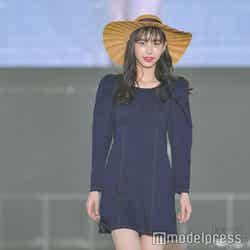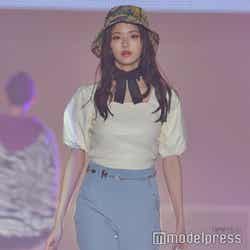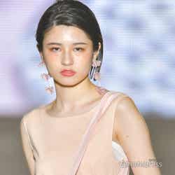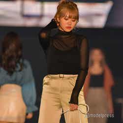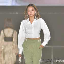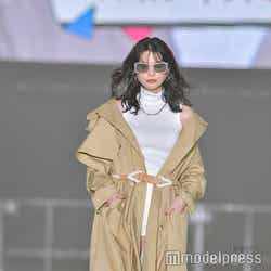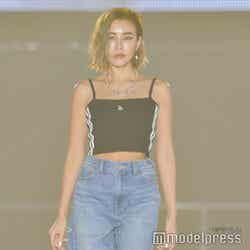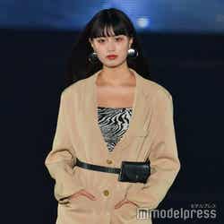 「F i.n.t」ステージでトップバッターを務めた藤田ニコル。ベージュのキャミソールワンピースを着こなして登場。ランウェイ先端では手を振って笑顔を見せていた。注目のインフルエンサー集結
