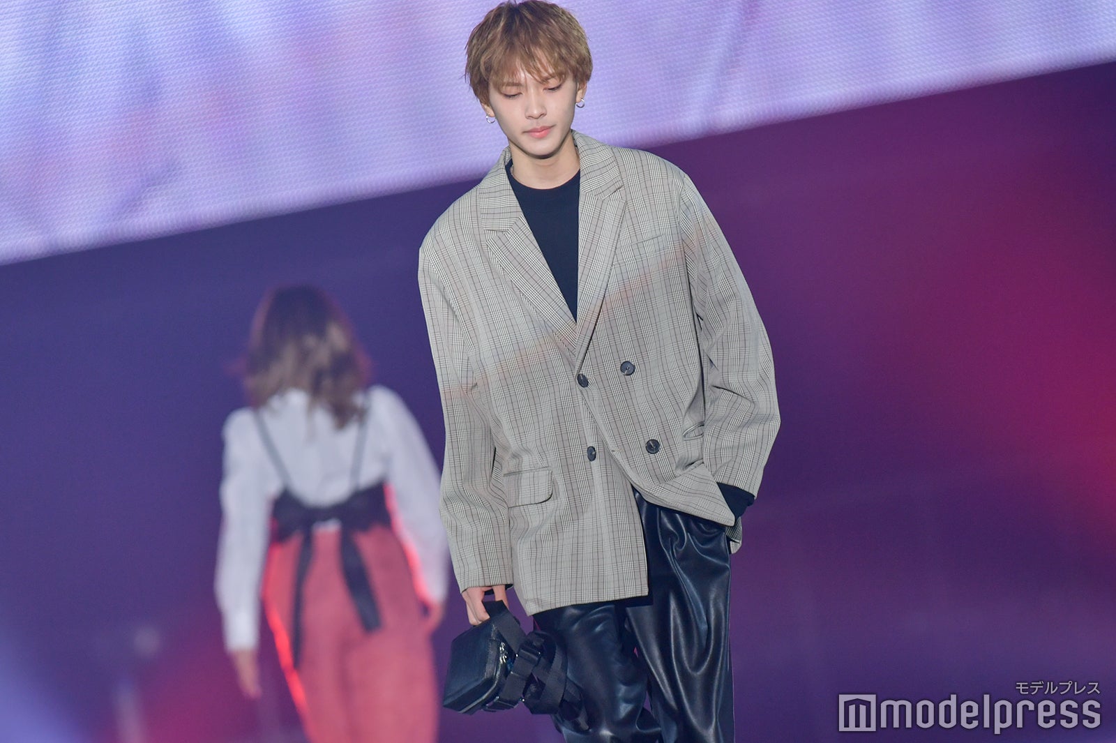 人気インフルエンサーが集結したステージに登場した酒寄は、グレンチェックのジャケットにレザーパンツを合わせ、金髪が映える大人コーディネートを着こなし。観客の反応に笑顔を見せながら、堂々とランウェイを歩いた。