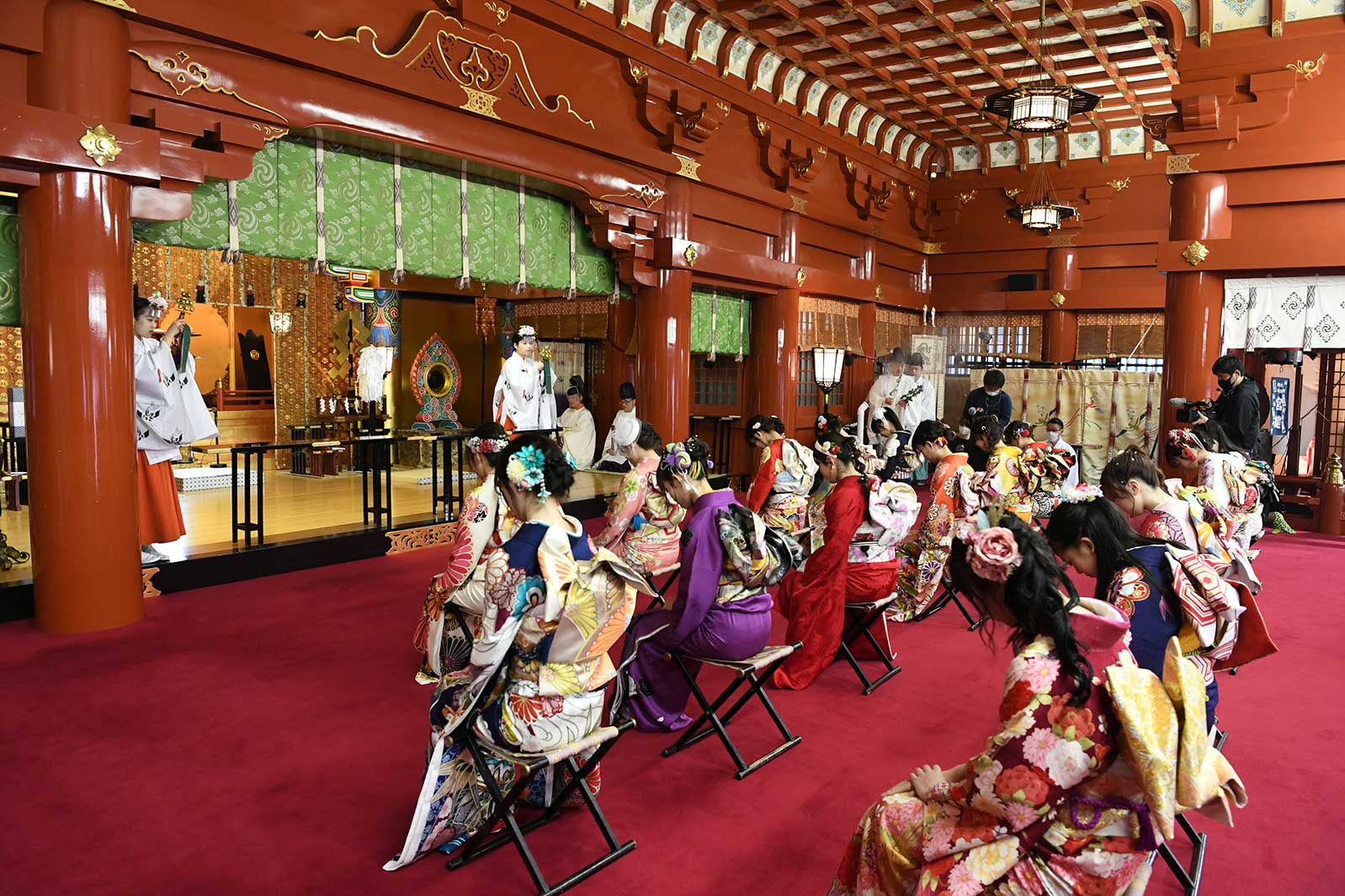 例年、成人の日に国内AKB48グループの新成人メンバーが神田明神に会し、合同で成人式を行っていたが、本年は新型コロナウイルスの影響で各地方からの移動を自粛し、それぞれのグループで成人式を開催。AKB48は成人の日から約2ヶ月遅れとなった。本日はあいにくの雨だったが色鮮やかな振袖に身を包んだ新成人メンバーたちが凛として御神殿へと向かう姿は、成人を迎えた自覚と喜びに溢れており、御神殿では厳かな雰囲気の中でご祈祷を受けた。