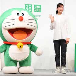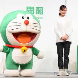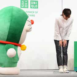 綾瀬は、ユニクロの「グローバルサステナビリティアンバサダー」に就任し、ボディーカラーが緑色となったドラえもんと対面。「いつもの青もかわいいけど、緑も晴れやかでいい」と太鼓判を押す。ドラえもんは「ありがとうございます。はるかちゃんに晴れやかと言ってもらえてうれしいな。照れちゃう~」とご機嫌だった。