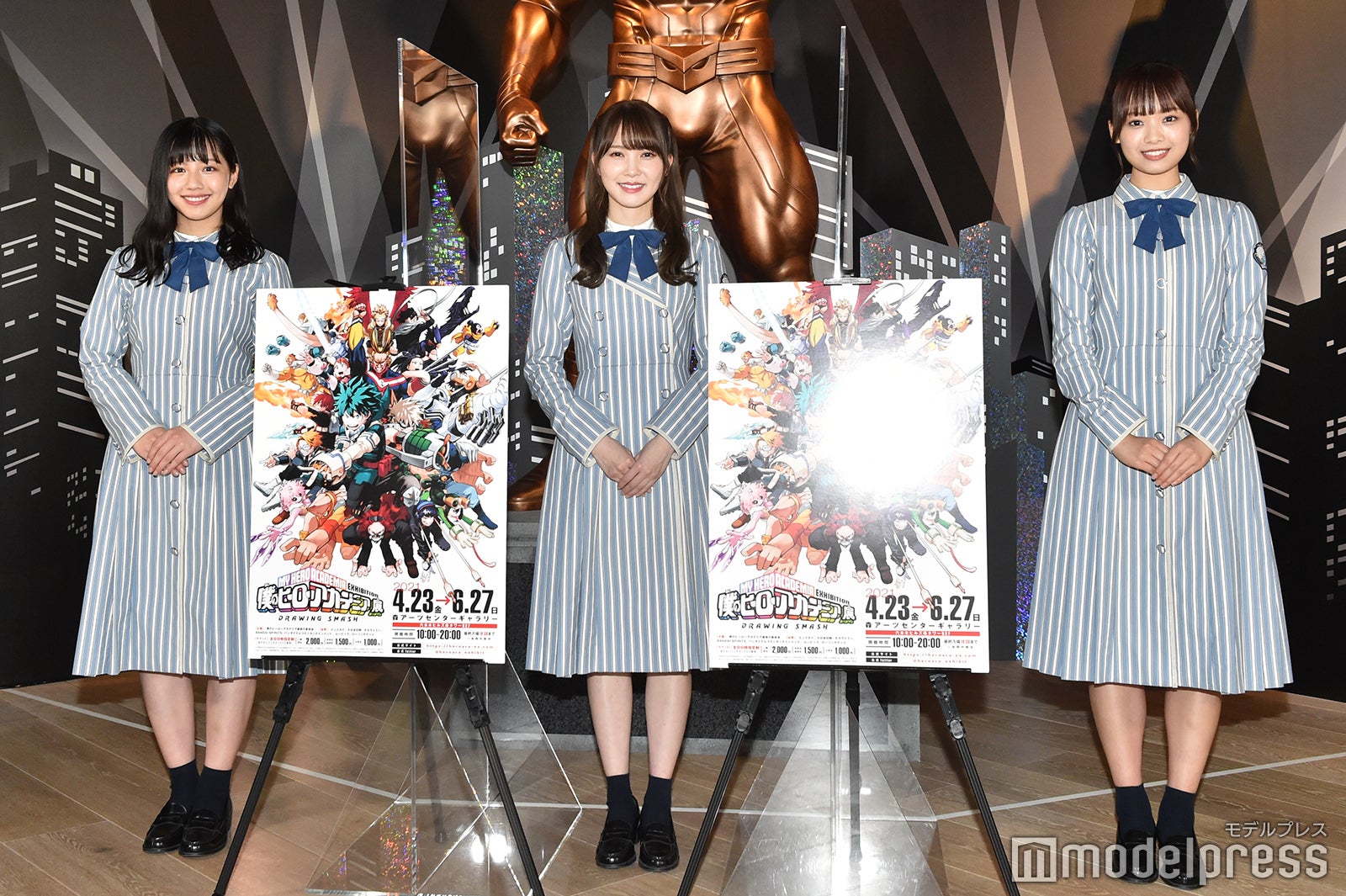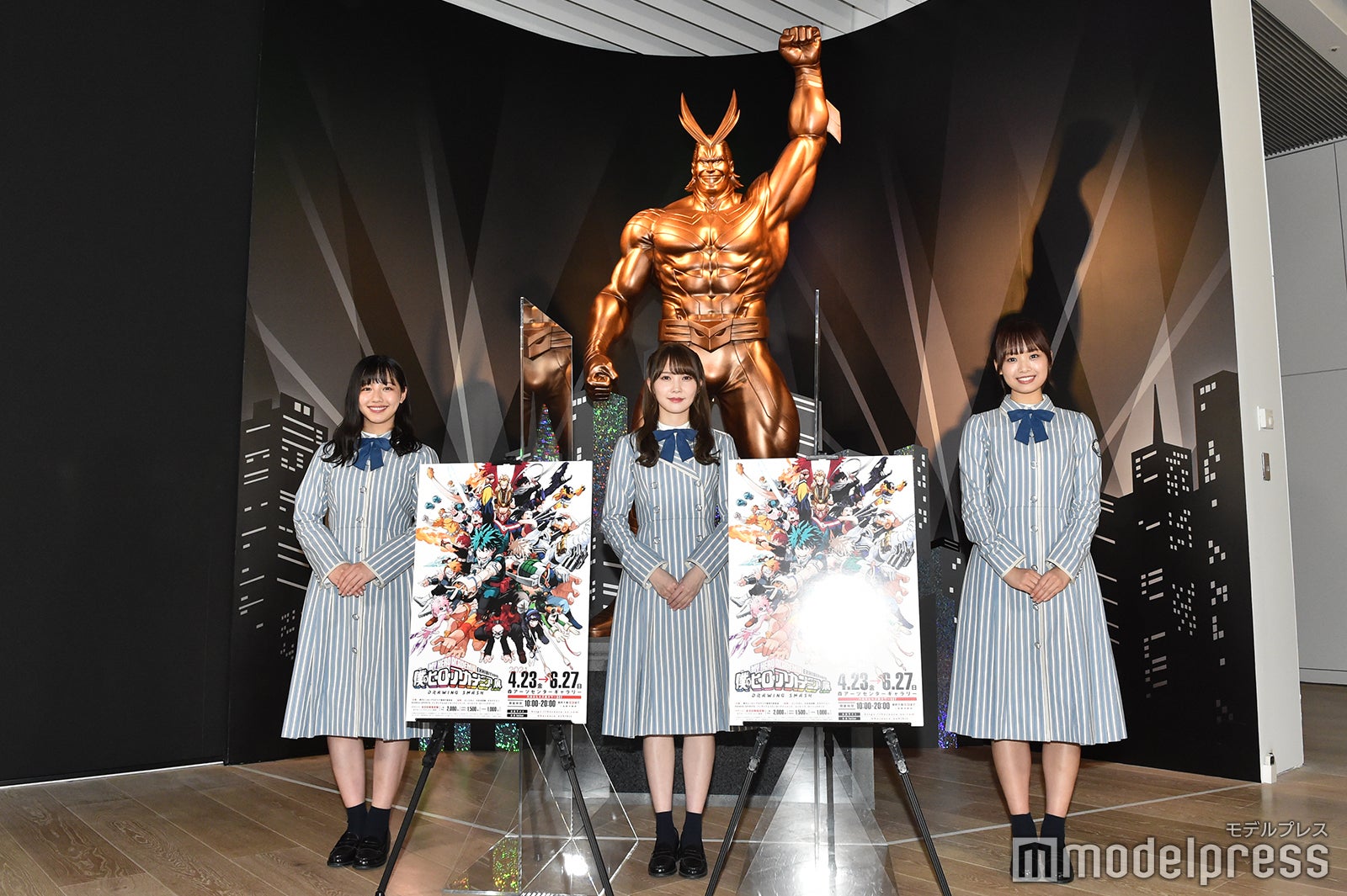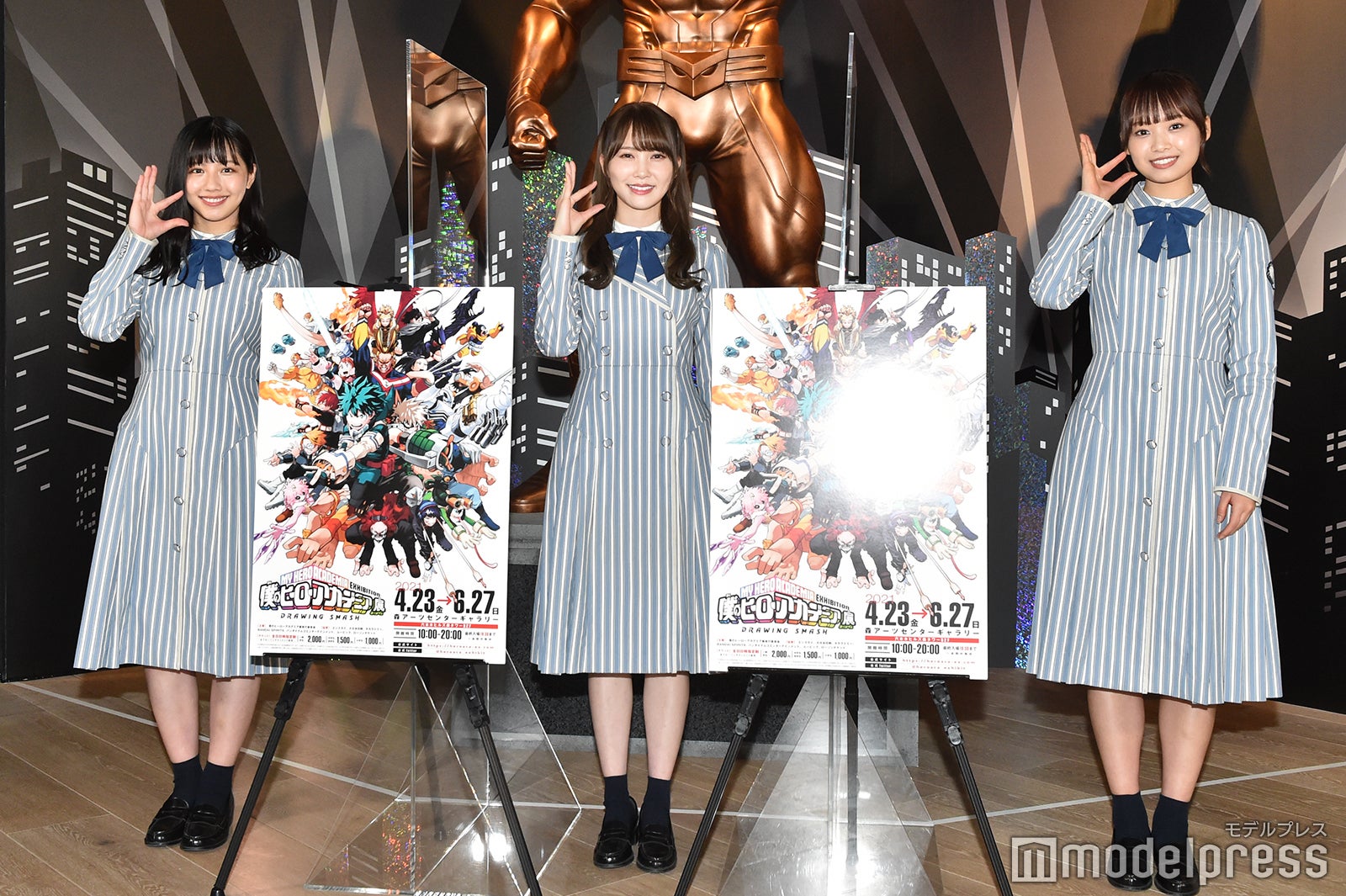 日向坂46の加藤史帆、濱岸ひより、渡邉美穂が22日、東京・六本木の森アーツセンターギャラリーで行われた「僕のヒーローアカデミア展 DRAWING SMASH」メディア向けPRイベントに出席した。