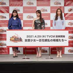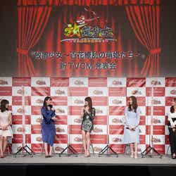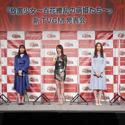 深田恭子、足立梨花、大野いと、佐野ひなこ、新田さちかが26日に行われた美少女RPGゲーム「放置少女~百花繚乱の萌姫たち~」の新TVCM発表会に出席。深田はワンショルダーのセクシーなミニ丈ドレスを着こなし、TVCM撮影でのエピソードやゲームにちなんだトークを展開した。