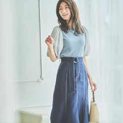 「かろやかに、そして、しなやかに」をテーマにした今回のWEBマガジンでは、フワリと舞うようなフリルデザインや、しなやかなラインのマーメイドスカート、フェミニンなフレアシルエットを纏い、レディに着こなす岡崎に注目。