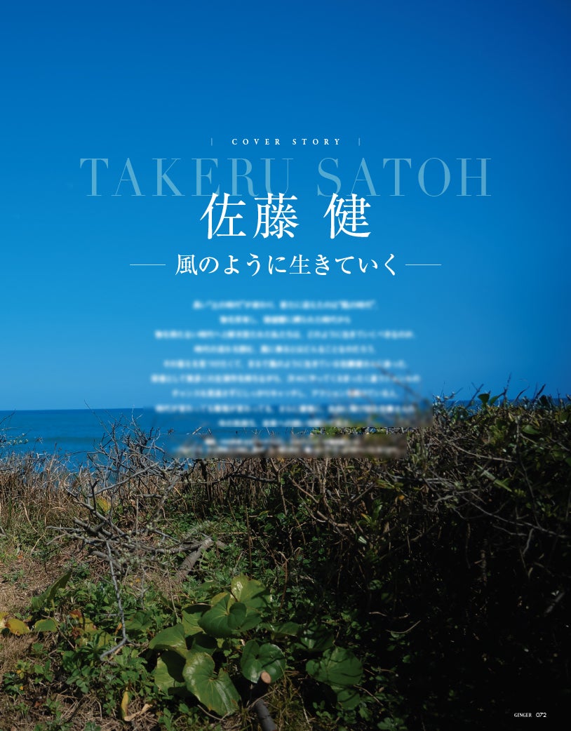 俳優の佐藤健が、発売中の雑誌「GINGER」6月号の表紙に登場。誌面では、公開中の『るろうに剣心 最終章 The Final/The Beginning』について語った。