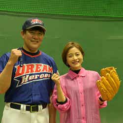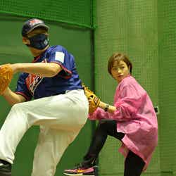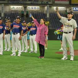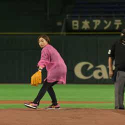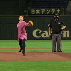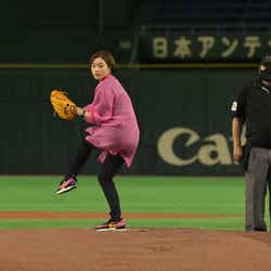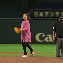 石原さとみ、ショートカットに大胆イメチェン姿で始球式 斎藤雅樹氏のサイドスロー投法披露