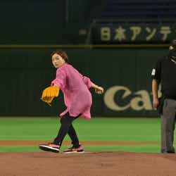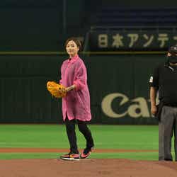 女優の石原さとみが17日に開催された「サントリー ドリームマッチ 2021」始球式に登場した。