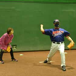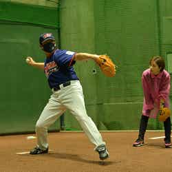 その後の始球式では、打席に高橋由を迎え、石原がヒーローズ先発の斎藤雅樹を模倣したピッチングフォームを披露。斎藤の代名詞“サイドスロー”投法に挑戦した。