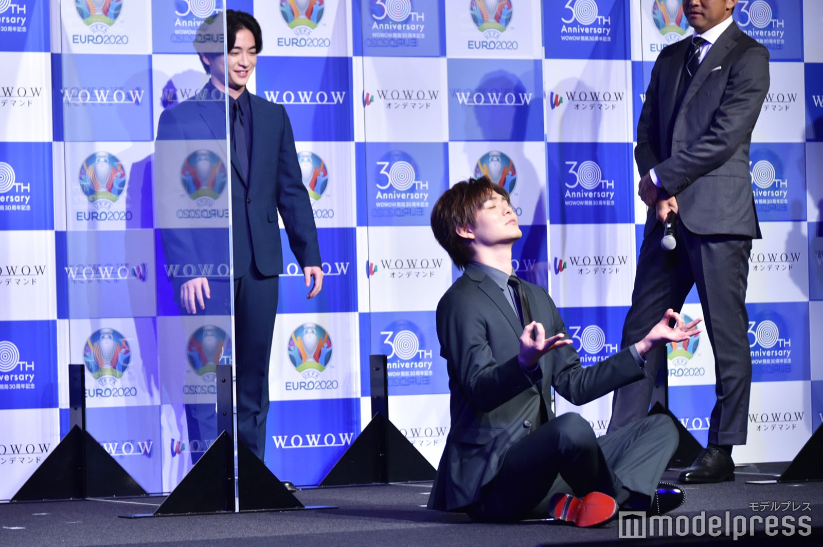 「UEFA EURO 2020 サッカー欧州選手権」の制作発表記者会見が25日、都内で行われ、UEFA EURO 2020 WOWOW番組MCを務めるHey! Say! JUMPの薮宏太と、UEFA EURO 2020 WOWOWスペシャルサポーターに就任した同じくHey! Say! JUMPの知念侑李が出席。サッカー選手のものまねを披露した。