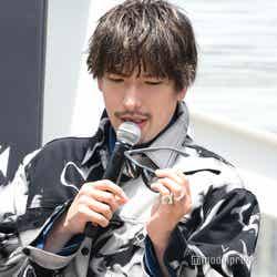 イタリア発のアイウェアブランド・POLICEとコラボすることとなったEXIT。同ブランドは過去にジョージ・クルーニー、デイビット・ベッカム、ルイス・ハミルトンら有名セレブを起用し、数多くのコラボ商品を販売してきたが、日本人としてコラボアイテムをリリースするのは2人が初めてとなる。りんたろー。は「愛用してきたブランド。僕らを起用していただいて心から光栄」と喜び、兼近大樹は「ジョージ、カム、ハミとか、そこと並ぶのは責任重大。僕らだけはみ出ているので、しっかり“前ならえ”したい(笑)。でも我々を選んだ会社のセンスを褒めたい」とドヤ顔で胸を張った。