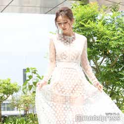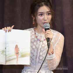 また「限界ギリギリまで露出」にチャレンジしたことに関しては「ポージングを取るうえで、見えないように気にしすぎてしまうことで、表情が硬くなったり、撮りたいポージングが取れないっていうのは、そこは私の勝手なプロ意識なんですけど、すごく素敵な写真を撮るのにもったいないと思って。周りも女性の方がすごく多かったので、本当に何もつけずに挑んだ写真がほとんどですよね」と笑顔。お風呂場での「泡を使った写真」に質問が及ぶと「本当にシャワーを浴びて。撮るためにというより、普段シャワーを浴びるような感覚の中で撮影させてもらったので。その時に体を洗うので、もちろん泡があってって感じで。本当にナチュラルに、普段私がシャワーを浴びているところをそのまま撮ってもらったり」と撮影の舞台裏を明かした。