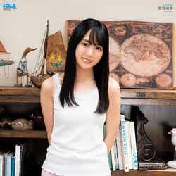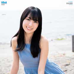 今月はHKT48の堺が登場。ニックネームはおいもちゃん。最新シングル『君とどこかへ行きたい』で初選抜。ちょっぴり恥ずかしい初水着になった瞬間の初々しさが伝わるグラビアとなっている。表紙は賀喜遥香