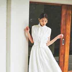 同WEBカタログは、ワンピースをはじめとしたブランドのサマーアイテムを貴島が女性らしく、凛と着こなした。