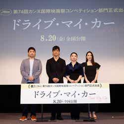 俳優の西島秀俊が4日に行われた村上春樹の短編を映画化した濱口竜介監督最新作『ドライブ・マイ・カー』(8月20日より全国公開)の壮行会に、女優の三浦透子・霧島れいか・濱口竜介監督とともに登壇した。