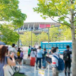 東京オリンピックが7月23日に開幕。よる20時から行われる開幕式を前に、メインスタジアムとなる東京・国立競技場の周辺には多数の人々が集っている。