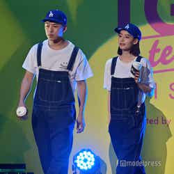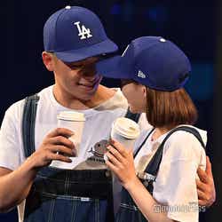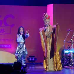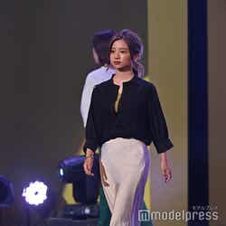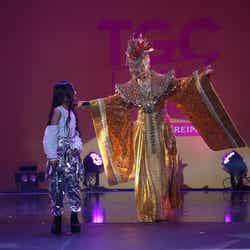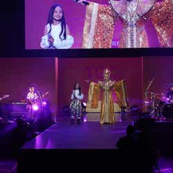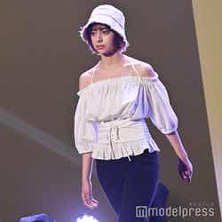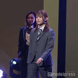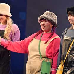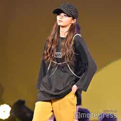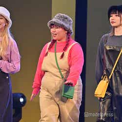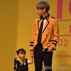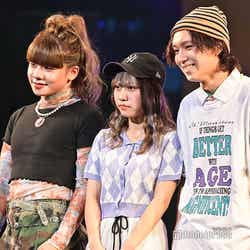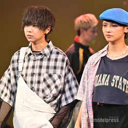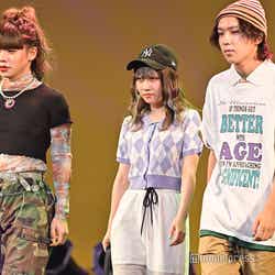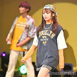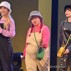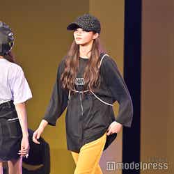 ファッションステージはなえなのがトップバッターを担当。「いぬのおまわりさん」を歌う愛らしい姿がSNS・動画サイトを中心に大きな話題となっているののちゃんこと村方乃々佳はBTSの「Dynamite」をBGMに、制服ルックでキュートにステージを歩いた。