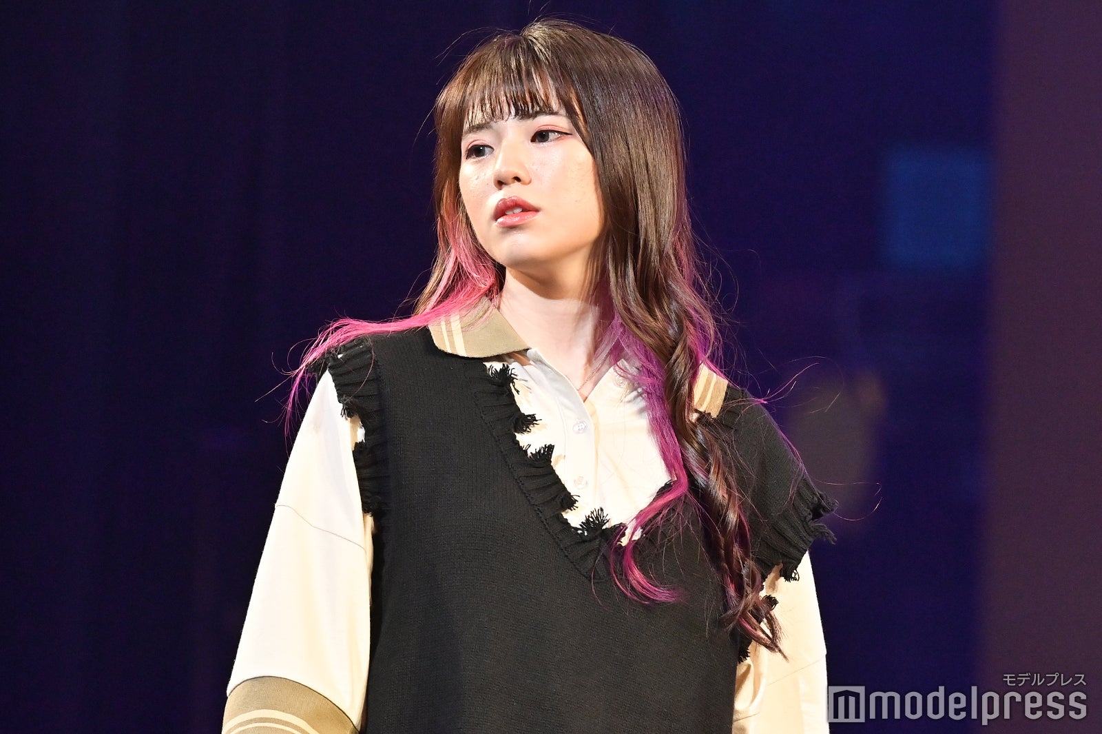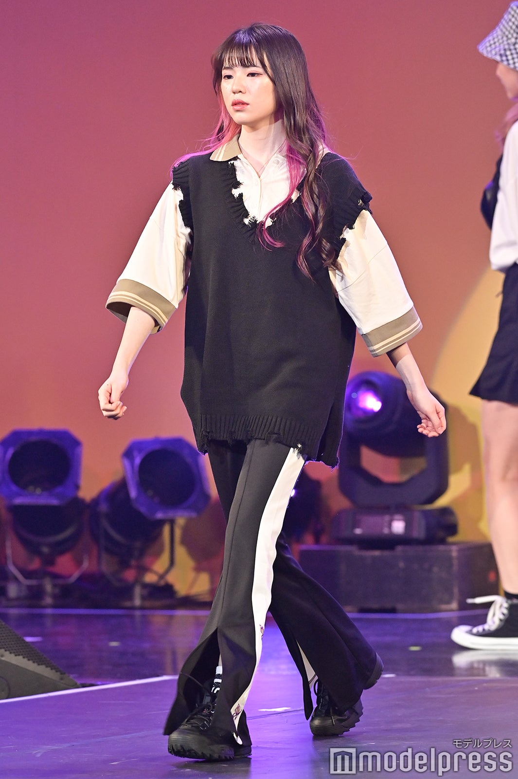 「Jammy」のファッションステージでは、カジュアルなファッションでランウェイをウォーキング。ピンク色のインナーカラーが可愛いヘアスタイルもステージで映えていた。