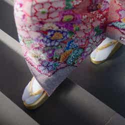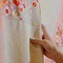 浜辺:ひと目見たときに、今回のお着物も素敵だなと思いました。総絞りというように、一つ一つ手作業で絞っていると聞くと、すごいお着物ですし、果てしない作業だなとも思いますし、やっぱり綺麗ですよね。今までよりも紫が多い印象だったので、この合わせ方も素敵だなと思いました。自分に似合う色を見つけていただいたなと思っています。