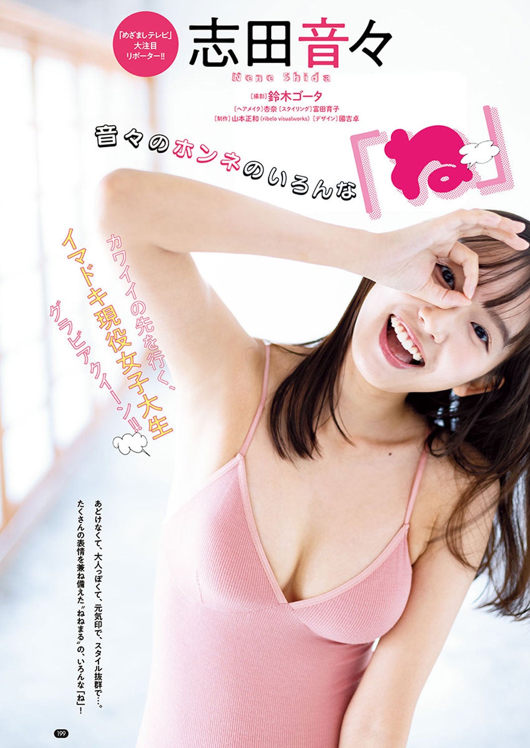 そのほか、巻中グラビアには、現役女子大生でタレントの志田音々が登場する。篠崎こころファンクラブ