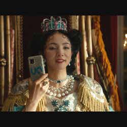 新CMシリーズ第一弾となる「登場」篇では、強引な女王様“UQUEEN”役の満島と、執事役の松田の二人が、スマホの未来を切り拓くべく奮闘する“UQUEEN”と執事たちの物語を描く。メイキングは、CMの豪華な美術や衣装、撮影現場の雰囲気、満島と松田の舞台裏の姿など、新CMシリーズの世界観への強いこだわりが詰まった内容となっている。満島が身に着ける首飾りや王冠などのアクセサリー、膨らんだスカートや、細部までデザインを凝ったきらびやかなドレス、手の込んだ髪型、頬にハートマークを描いたメイクも見どころで、満島の周りには常に多くのスタイリストとヘアメイクが控え、まるで本物の女王さながら。今回、新シリーズCM第一弾の撮影ということもあり、それぞれのカットごとに力のこもった緊張感あふれる映像となっている。