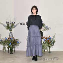 同展示会は、『rose bleue』のコレクション初のお披露目の場であり、有村が企画からデザインまで手掛けたAutumu Winterのアイテムを発表。今回のコレクションのテーマ『friperie』は、フランス語で“古着屋”を意味し、有村が経験した古着との特別な出会いと想いがこもったコンセプトとなっている。今回、同ブランドのクリエイティブディレクターを務めることとなった経緯を聞かれた有村は「私はもともとお洋服が大好きで、小学生のときから小学生向けのファッション誌とかを見るのが大好きだったんですけど、自分の好きなお洋服を自分で作れるようになったらいいなということは常々思っていて、今回、ブランドプロデュースをさせていただけるキッカケをいただいたので、プロデュースさせていただくことになりました」と説明。