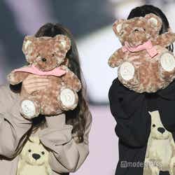 テディベアのぬいぐるみを抱えながら、くまのニットでキュートにランウェイを歩き、先端ではぬいぐるみで顔を隠すお茶目な演出で会場を魅了した。