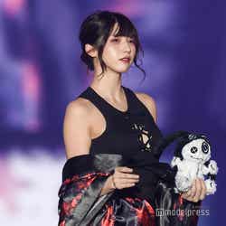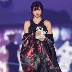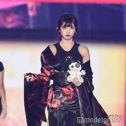 目の下に大胆に入れたチークとダークトーンのリップの“地雷メイク”で、よりセクシーな雰囲気を放ったえなこ。ぬいぐるみを抱えながら歩くキュートな一面も見せ、会場を釘付けに。