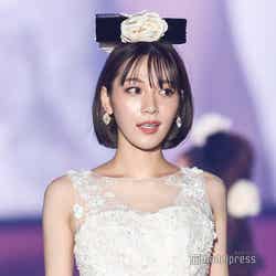 ウエデイングドレスショップ「FOUR SIS&CO.」のステージでは、シンプルな純白のノースリーブドレス姿を着用し、シースルー素材からは美背中も披露。普段はカジュアルファッションのイメージが強い古川だが、インパクト抜群のブラックのビックリボンのヘアアクセや、漆黒のキャットラインで新鮮な魅力を開花していた。