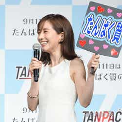 イベントでは、飯尾がレッスンを重ねたダンスを披露。終盤、自身のギャグである「忍法メガネ残し」を取り入れるシーンもあったが、練習の成果を見た田中は「かっこいい。シュッとしているし、目つきが変わりましたね」とにっこり。CMで夫婦を演じていることから、「最初は人間ドックの前みたいな目つきだったけど、PV撮影のときは目が輝いていた。自信がついたのかな。一時は別居を考えていたのですが見直しました」と微笑んだ。