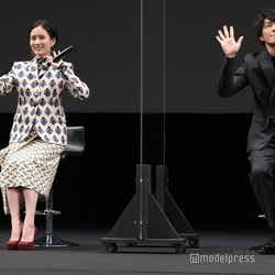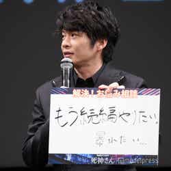 また、竹中も田中との共演エピソードを披露。「大河ドラマで軍師官兵衛をやったとき、圭くんは石田三成を演じたんだけど、カメラ位置の関係で立ち位置を動いてくださいと言われた。でもお芝居的にはその位置じゃおかしくて、ベテランの人に言われても立ち位置を決して動かなかった。自分の演技に忠実。役に忠実で意思を持っている。感動すら覚えた」と語った。田中はその話を聞いて照れくさそうに笑っていた。