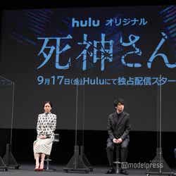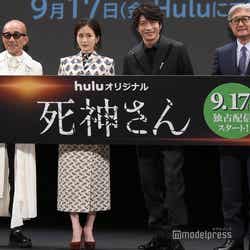 俳優の田中圭が7日、都内で行われたHuluオリジナルドラマ『死神さん』配信記念イベントに共演の前田敦子、竹中直人、メガホンをとった堤幸彦監督とともに出席。堤監督や共演者から演技を絶賛された。