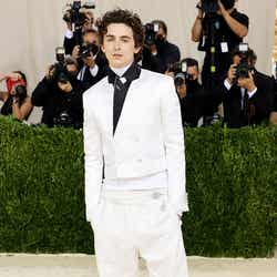 ティモシーは襟口のディティールがおしゃれな「ハイダー アッカーマン」のホワイトスーツにコンバースのスニーカーを合わせて登場。フォーマル×ストリートを絶妙に融合したルックで流石のファッショニスタぶりを披露した。
