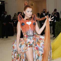 そして今回も、会場の視線を奪うド奇抜なスタイリングのセレブが続々。ブラジル出身のモデル、ヴァレンティーナ・サンパイオは、ドラゴンが翼を広げたようなインパクト大のドレスで圧倒。ドイツ出身歌手のキム・ペトラスは、胸元に大きな馬の顔をつけたドレスで、なんと馬になりきって登場。まさしく“ポニーテール”ヘアがマッチしていた。