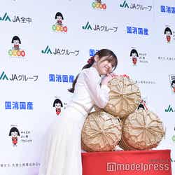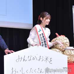 さらに、JA全中の会長から“お米消費拡大アンバサダー”に任命された松村は「えー、嬉しい!光栄です。かっこいい!」と喜び、「自分でいうのもなんですけど、本当にピッタリだなと思います。ぜひともやらせていただきたいですし、1人でご飯を食べるのも大好きなんですけど、私は自分がご飯を食べていて、思わず『さゆりんごがご飯を食べていたので、僕もご飯を食べちゃいました』って言われるとすごく嬉しいので、みなさんとたくさんご飯が食べられるように、私も一生懸命ご飯の魅力を発信していきたいなと思います」と言葉に力を込め、同アンバサダーのたすきと認定証を受け取った。松村沙友理、美や健康の秘訣は“ご飯”