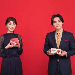 いつもの真っ赤な衣装とは違い、ひと手間くわえて贅沢に仕上げた新商品に合わせ、今回の二人はシックな装いで登場。まずメインとなる二人の共演シーンから撮影を行った。吉沢の“ココロの声”を読み取り、その声を代弁していく浜辺のセリフ内容に合わせて、表情豊かに味わっていく吉沢。監督やスタッフからも「さすが!息ピッタリ!」という声が相次ぎ、NGテイクも無く無事に終えることが出来た。