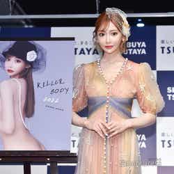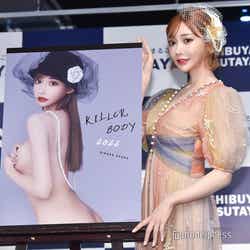 明日花キララが2日、都内で2022年カレンダー「KILLER BODY 2022」(主婦の友社)の発売記念イベントを開催。イベント前に囲み取材に応じた。