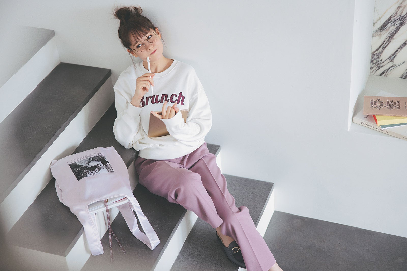 異なるブランドをまといながらも、全体的にまとめられたトーンで並ぶメンバーの様子は、まさに本企画のリードにある「一人一人、ちゃんと尖るべきところは尖っていて、その尖っている部分がそれぞれ違って、でも全体的には丸くて、なんとも言えない透明感がある。彼らが放つ魅力はあまりにも多彩で、まるで人類の進化系のよう。その一方で、クラシックな重厚さもあるから不思議なのだ」という一文を象徴しているかのよう。