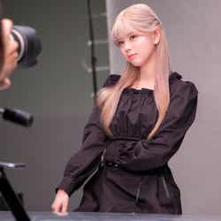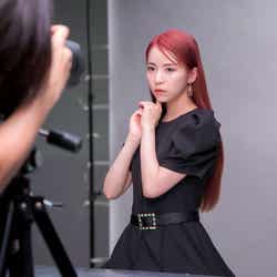 撮影が始まり「クールに!」とオーダーが入ると、少し照れ笑いを見せるRIKU。「元気な感じもお願いします!」とリクエストがあると、すぐに持ち前の笑顔で応えるなど、臨機応変に対応。スタッフから「キレイ!」と声が上がると「その“キレイ”(という声)だけで頑張れます…!」と嬉しそうにコメントした。MAYUKA、クールな表情見せるもお茶目な一面見える